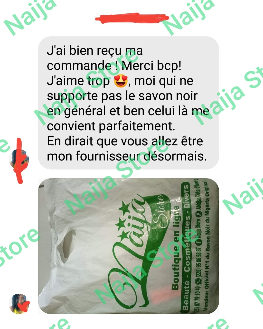Chez Naija Store, nous mettons à l’honneur notre savon noir Nigeria 100 % naturel, fabriqué à la main avec des ingrédients bio premium comme le beurre de karité, l’huile de coco et la cendre végétale. Notre savon noir Nigeria aide à lutter contre l’acné, les taches pigmentaires, les imperfections cutanées, les masques de grossesse, tout en révélant l’éclat naturel de votre teint.